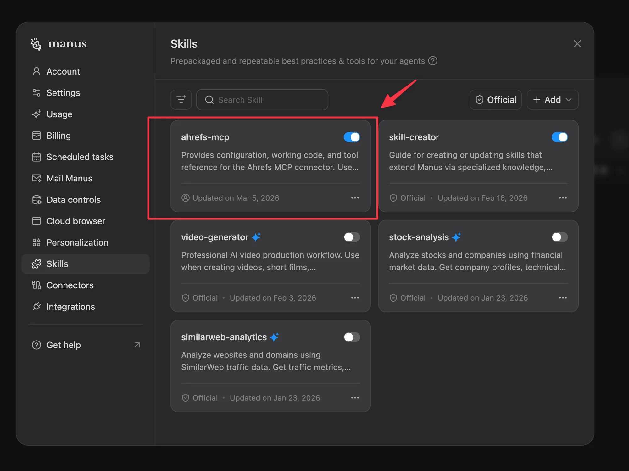 The Ahrefs MCP documentation has a dedicated Manus setup guide. It’s short and clear. It tells you to:
