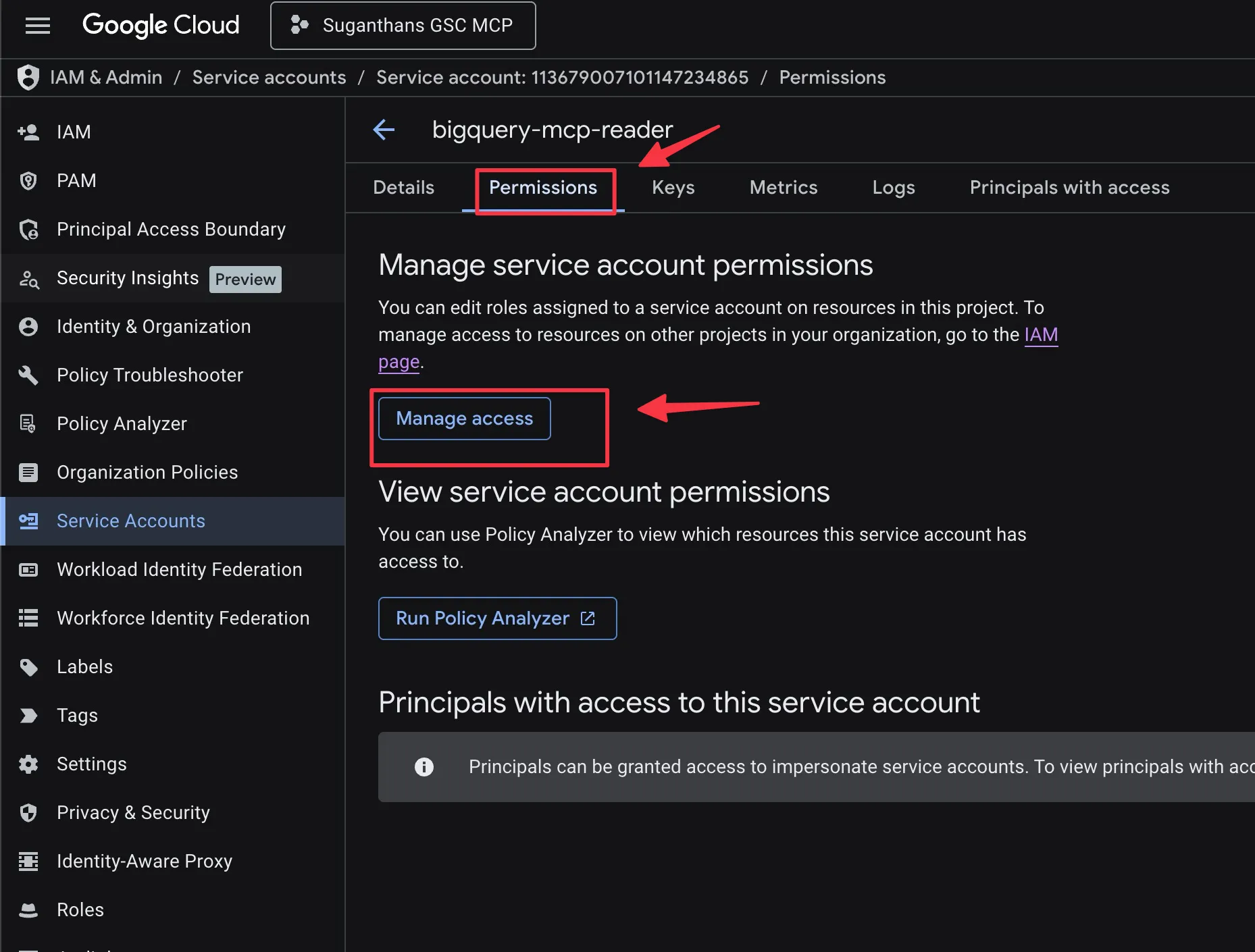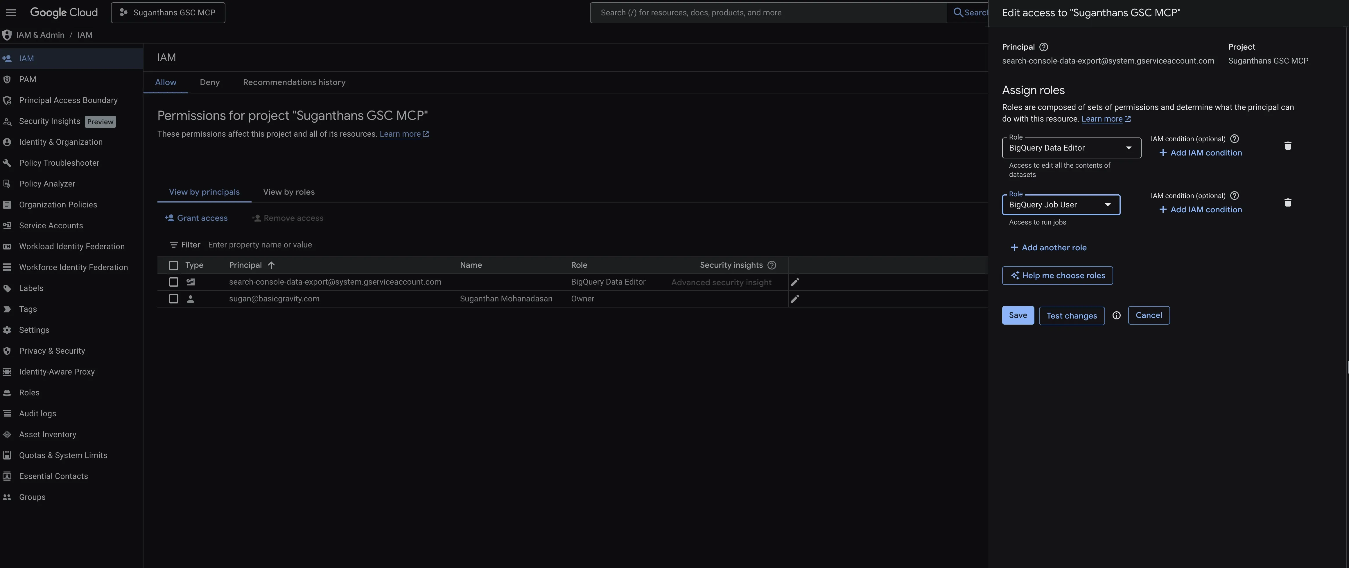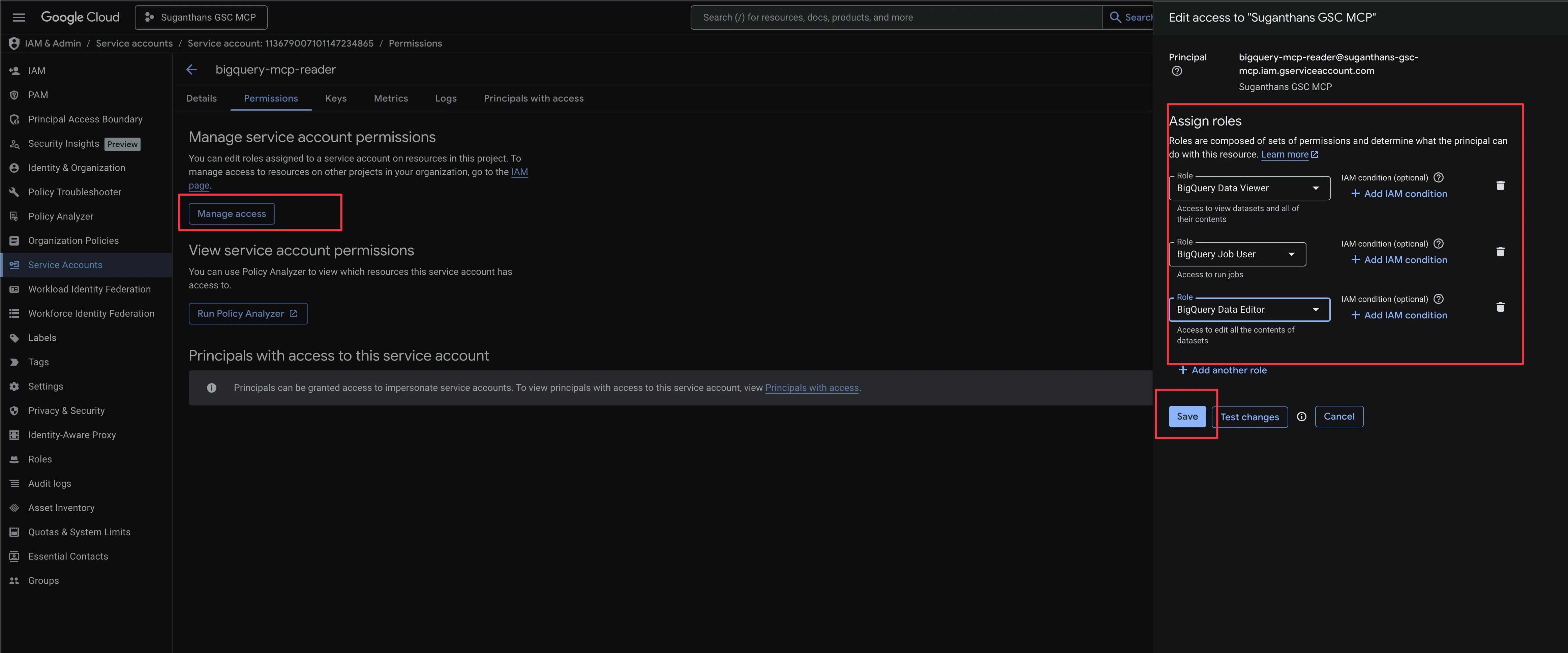 Why Data Editor? The ML tools (traffic forecasting and anomaly detection) need to create temporary models in BigQuery. Data Viewer alone won’t work. The MCP server blocks all writes except ML model creation and SELECT queries, so your data is safe.