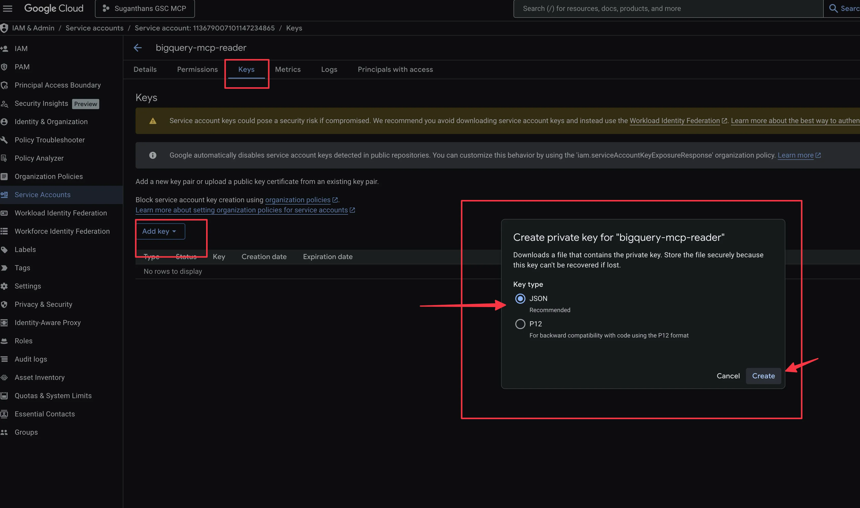 Save the JSON file (e.g. ~/Downloads/bigquery-mcp.json)