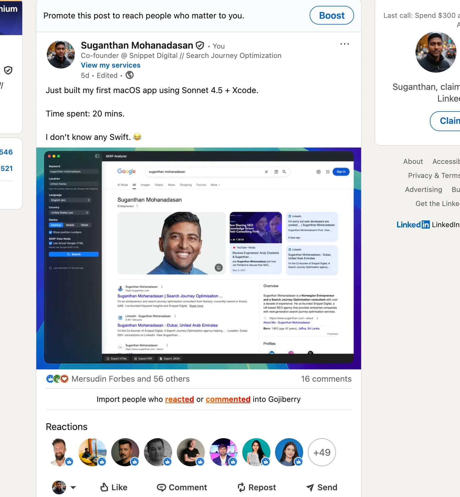 I’m still very much a beginner at this. The SERP Analyzer works, but it’s rough around the edges. There are UI quirks I haven’t fixed. Error handling is minimal. It’s not something I’d put on the App Store tomorrow.