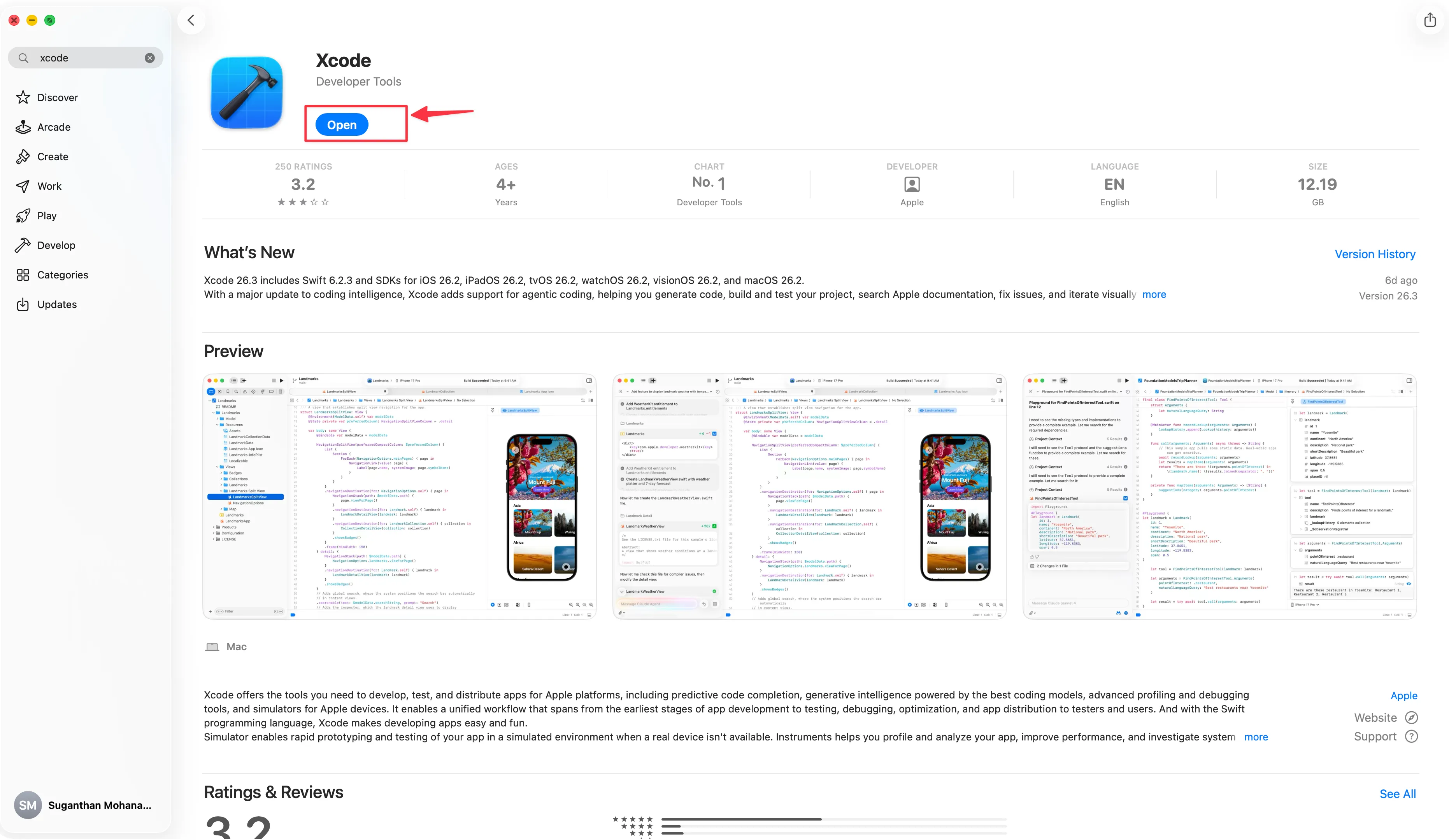 - Xcode 26.3 or later. Free from the Mac App Store. It’s a big download (around 12GB), so grab a coffee.