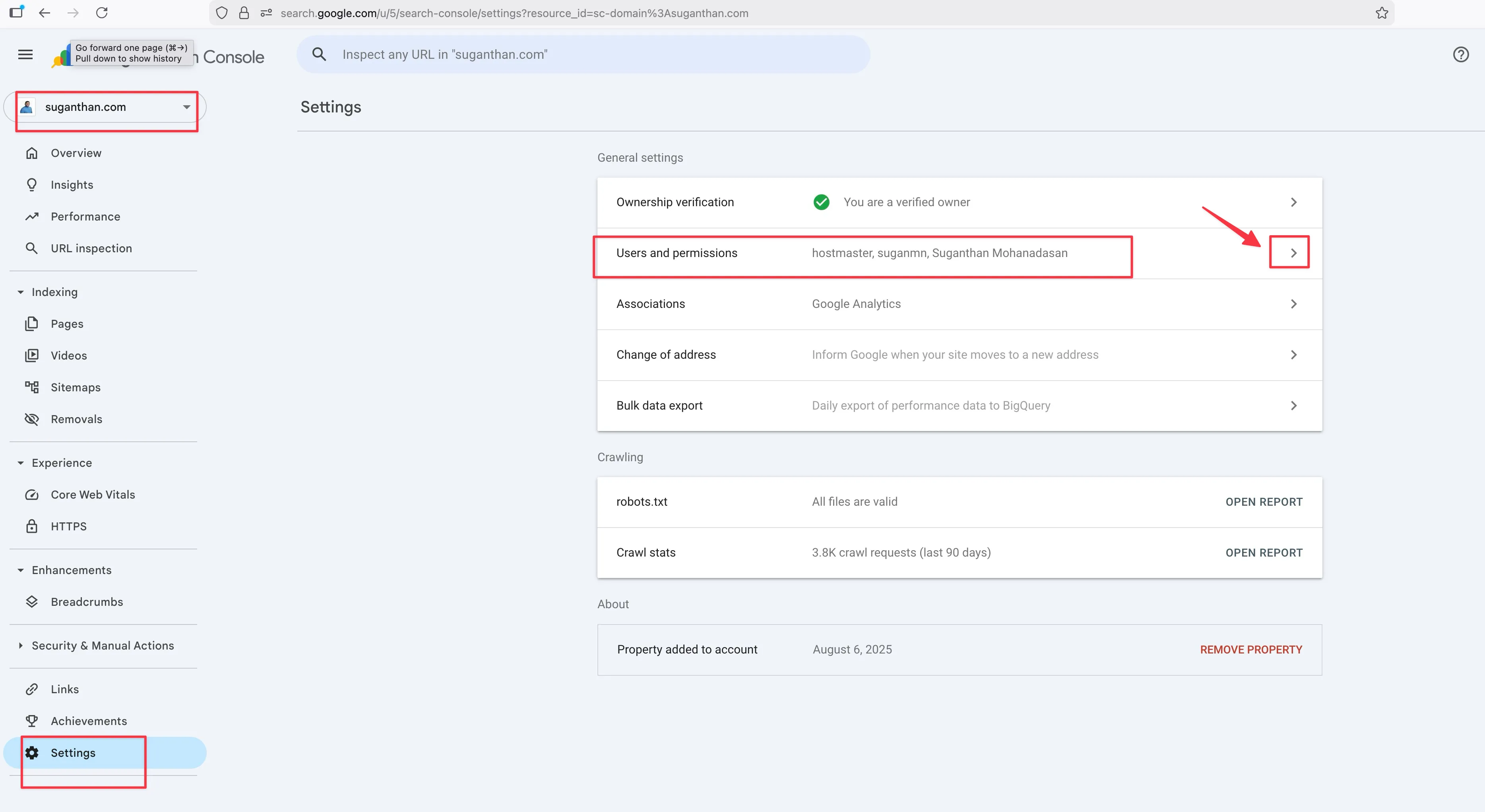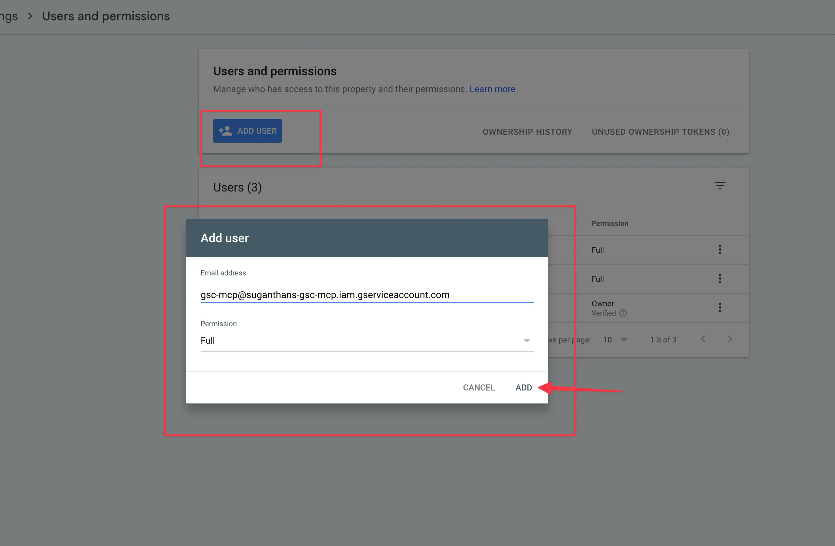 This is the step that connects everything together. You’re giving your robot user permission to read your Search Console data.