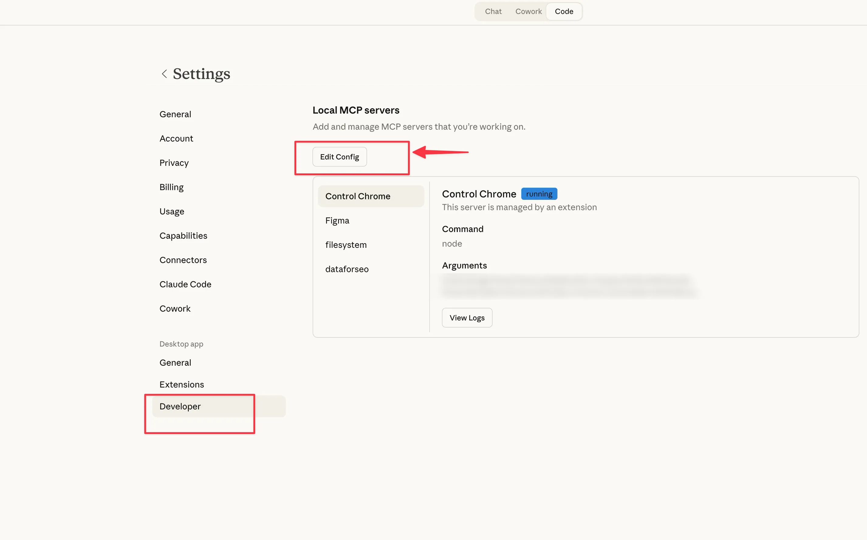 Nearly there. Now you tell Claude Desktop where to find the MCP server and your credentials.