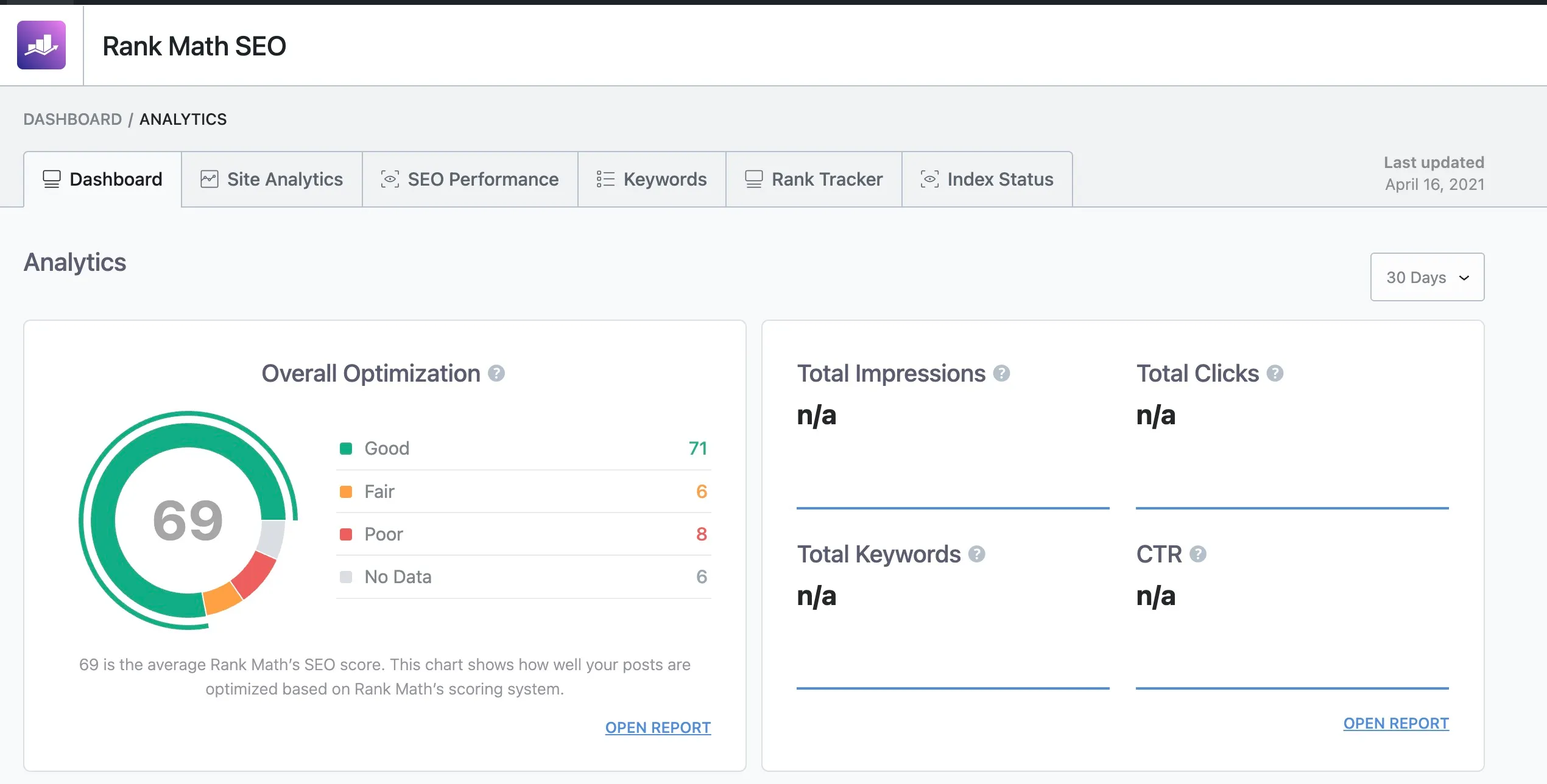 Multiple users have reported discrepancies between Rank Math’s analytics and the data shown directly in Google Search Console. Keyword counts occasionally show zero when they should not. I would treat the built in analytics as a convenience feature rather than a reporting tool.