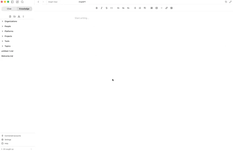 The graph starts sparse and gets richer over time. After a week, it’s genuinely useful. After a month, it’s indispensable.