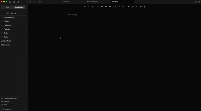 The graph starts sparse and gets richer over time. After a week, it’s genuinely useful. After a month, it’s indispensable.