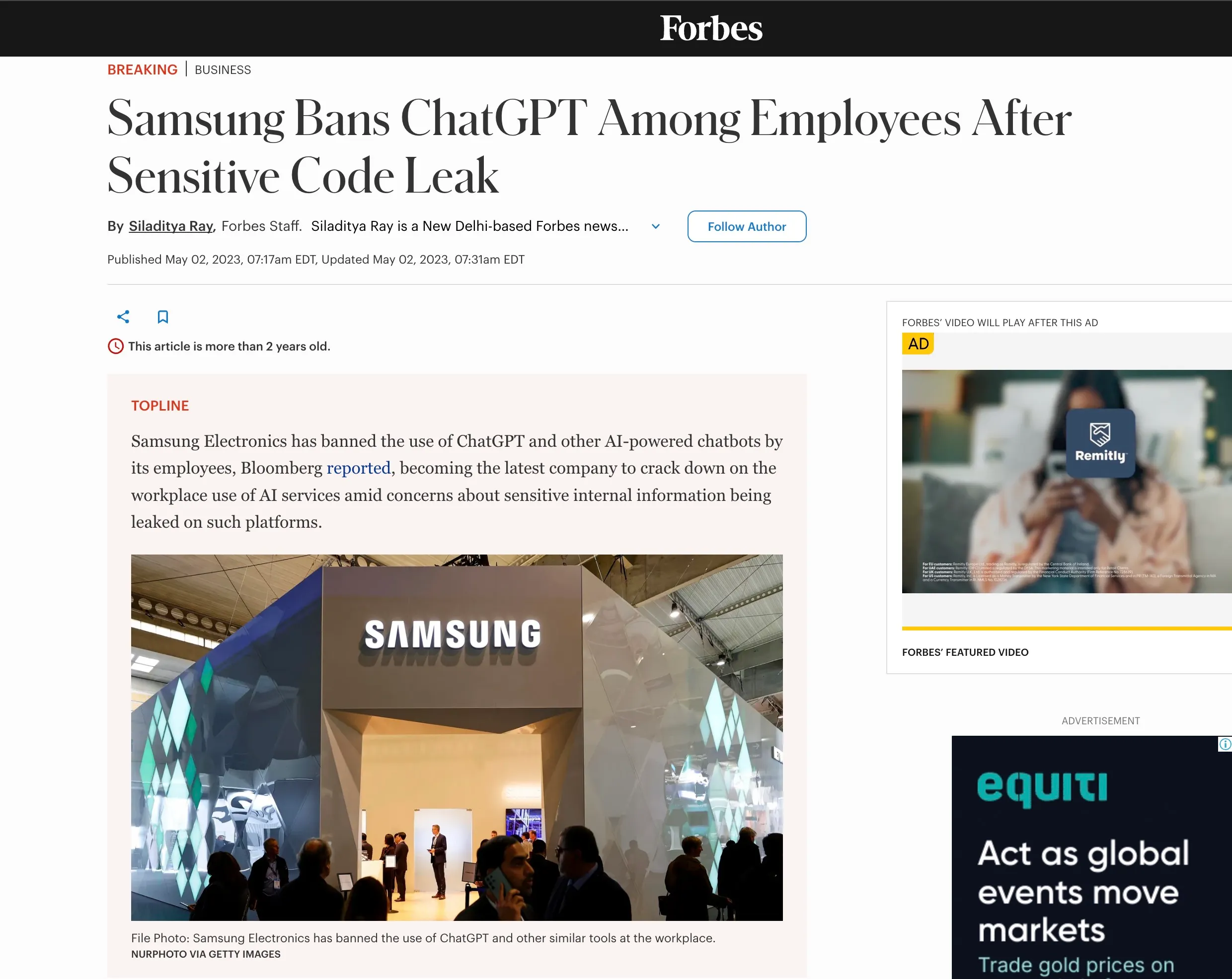 Samsung banned ChatGPT internally after employees pasted proprietary source code into the chat on 3 separate occasions. The code ended up in OpenAI’s training data.