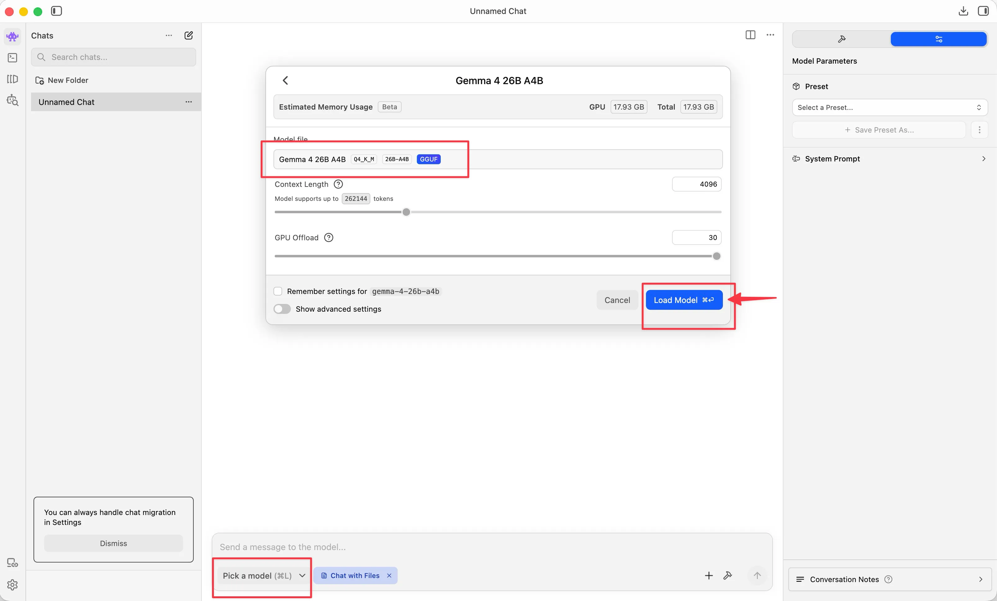 Once downloaded, pick the model and load it.
