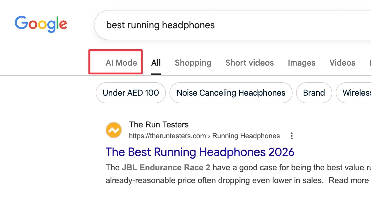 Google AI Mode is now prominent within the search.