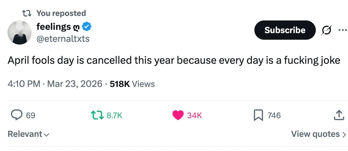 Notes / SEO is finally dead SEO is finally dead Apr 1, 2026 · Random Share X LinkedIn Copy link ← All notes