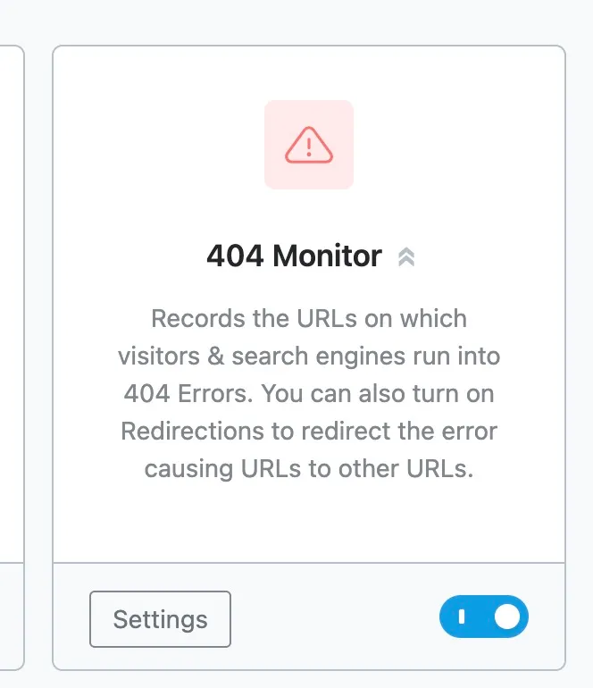 The 404 monitor and redirect manager has only gotten better. It now supports 301, 302, and 307 redirects, regex based rules, and bulk redirect management. For a feature that most SEO plugins lock behind a premium paywall, having this in the free version is significant.